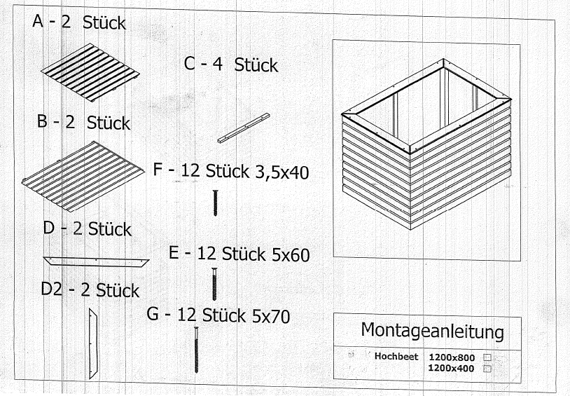 Blumenkasten als Hochbeet ohne Boden zur Selbstmontage, inkl. Aufbauanleitung und Schrauben.