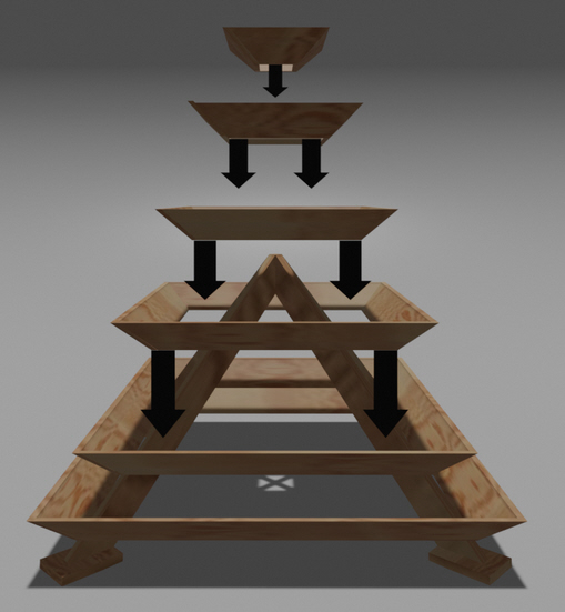 6 Ebenen, die unterste Ebene hat ein Maß von 120x120cm